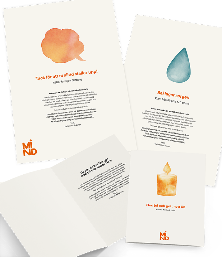 Köp Minds gåvobevis och ge bort livräddande minuter i Minds stödlinjer